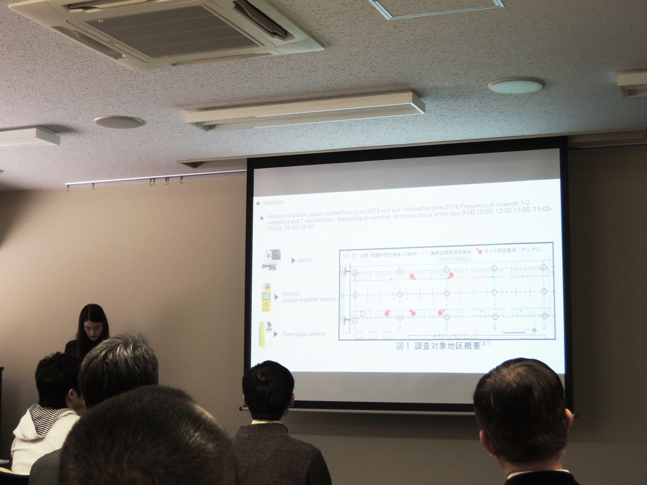 ナースティアは、積雪寒冷地の冬季の屋外オープンスペースの使われ方に関する調査を行いました。今年の卒論や修論で行っていた北3条広場の屋外調査に参加しながら、調査手法や分析方法を学びました。帰国後はハバロフスクでも実践し、ロシアでの冬季の屋外空間の使われ方を考察するそうです。