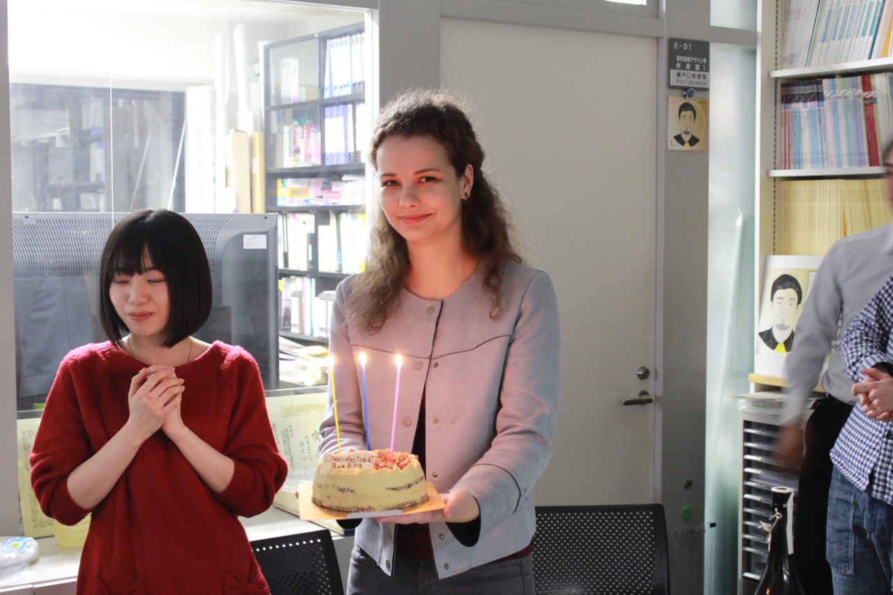 研究室では、今月16日にロシアへ帰国するクリヴォロチコ・マルガリータとパウカエア・アナスタシアの送別会を行いました。